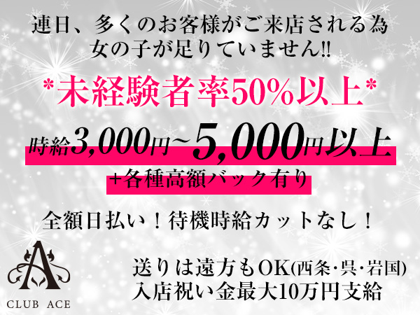 ホールスタッフ ============== お客様のご案内やテーブルセッティング、ドリンクを運んだり灰皿交換をしたりといったホール業務全般をお願いします。 未経験の方でも簡単に出来るお仕事ばかりです。 ドライバー ============== 終電後にキャストやスタッフを希望地まで送り届けるお仕事です。 |