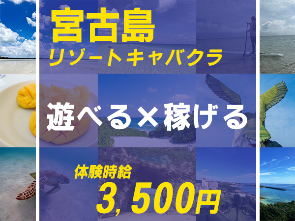 宮古島のリゾートキャバクラ! お店の準備・後片付け 簡単なウェイター業務が 主なお仕事です。 研修制度もあるので 未経験者の方も大歓迎。 接客を一から学べるので あなたのスキルアップにも繋がります。 |