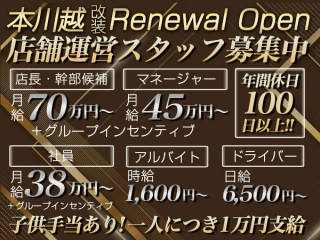 2026年3月2日「本川越」改装リニューアルオープン!店舗スタッフ大募集☆広々キレイな店内でみんなが楽しく働ける環境となっております。